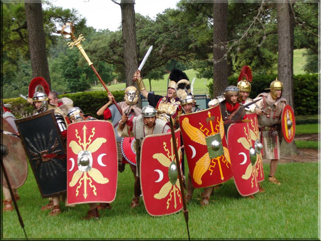 The troops form up for advance. Heavy pressure from the enemy! The men are stunned as their Legate falls to a javelin.